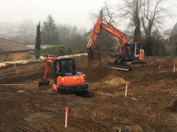 Démolition d'un garage et terrassement de 720 M3 pour une villa de 200 M2 sur le secteur de Sainte Foy les Lyon.
