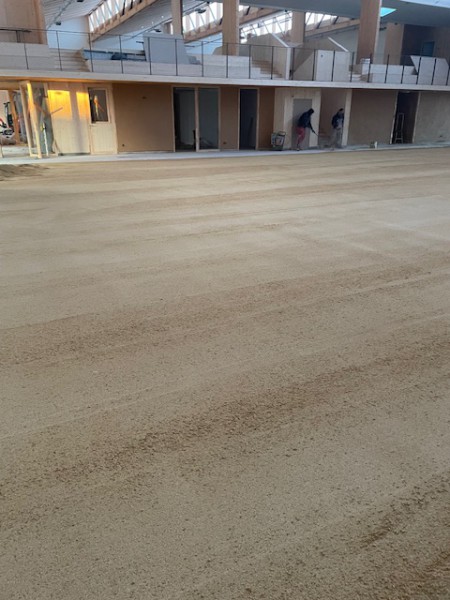 Pour la création de son boulodrome la mairie de Vaulx en Velin nous a confié la mise en forme du revêtement de finition pour l'ensemble des terrains intérieur.