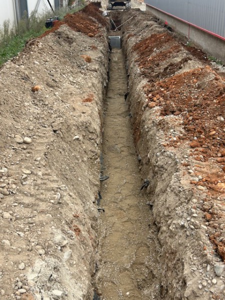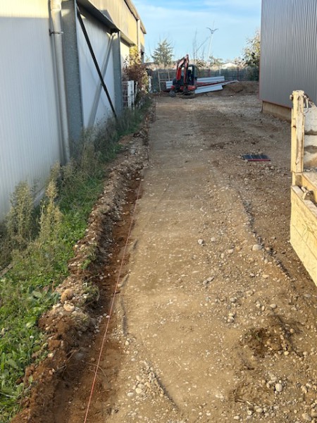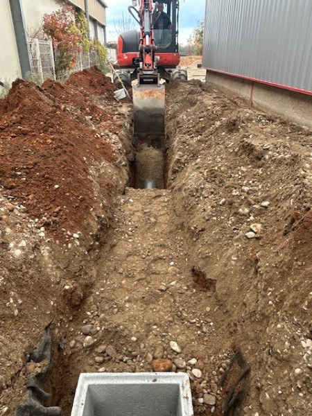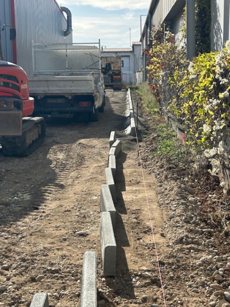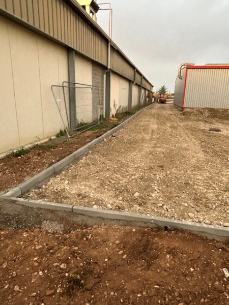 Création de réseaux d'eaux Pluviale, pose de bordure et préparation pour l'application d'un enrobé, suite à l'agrandissement de l'entreprise Flex à Corbas.